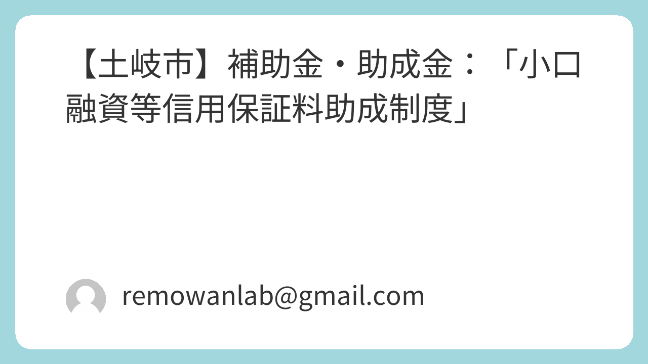 • 💰 金額・補助率: 詳細情報には具体的な金額や補助率の記載がありません。助成対象となる信用保証料の全額、または一部が助成されると想定されます。土岐市担当窓口へお問い合わせください。