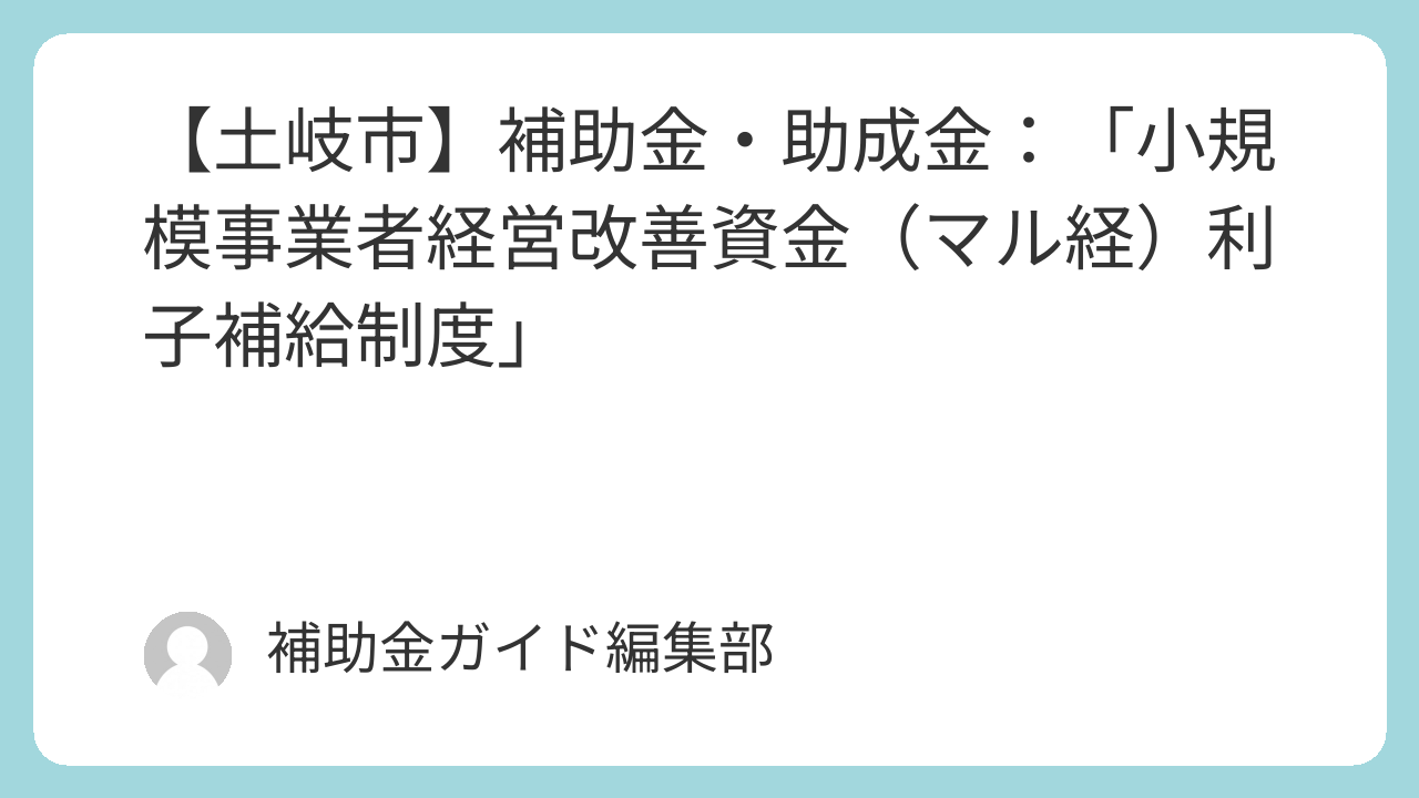 - 💰 金額・補助率: 日本政策金融公庫の「マル経融資」に係る利子の一部または全額を補給(具体的な補給率や上限額は土岐市へ要確認)。