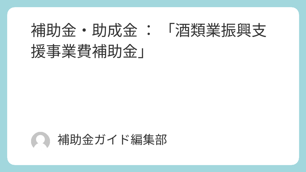 「酒類業振興支援事業費補助金」は、国税庁が実施する支援策であり、日本産酒類の競争力強化と持続的な成長を目的としています。