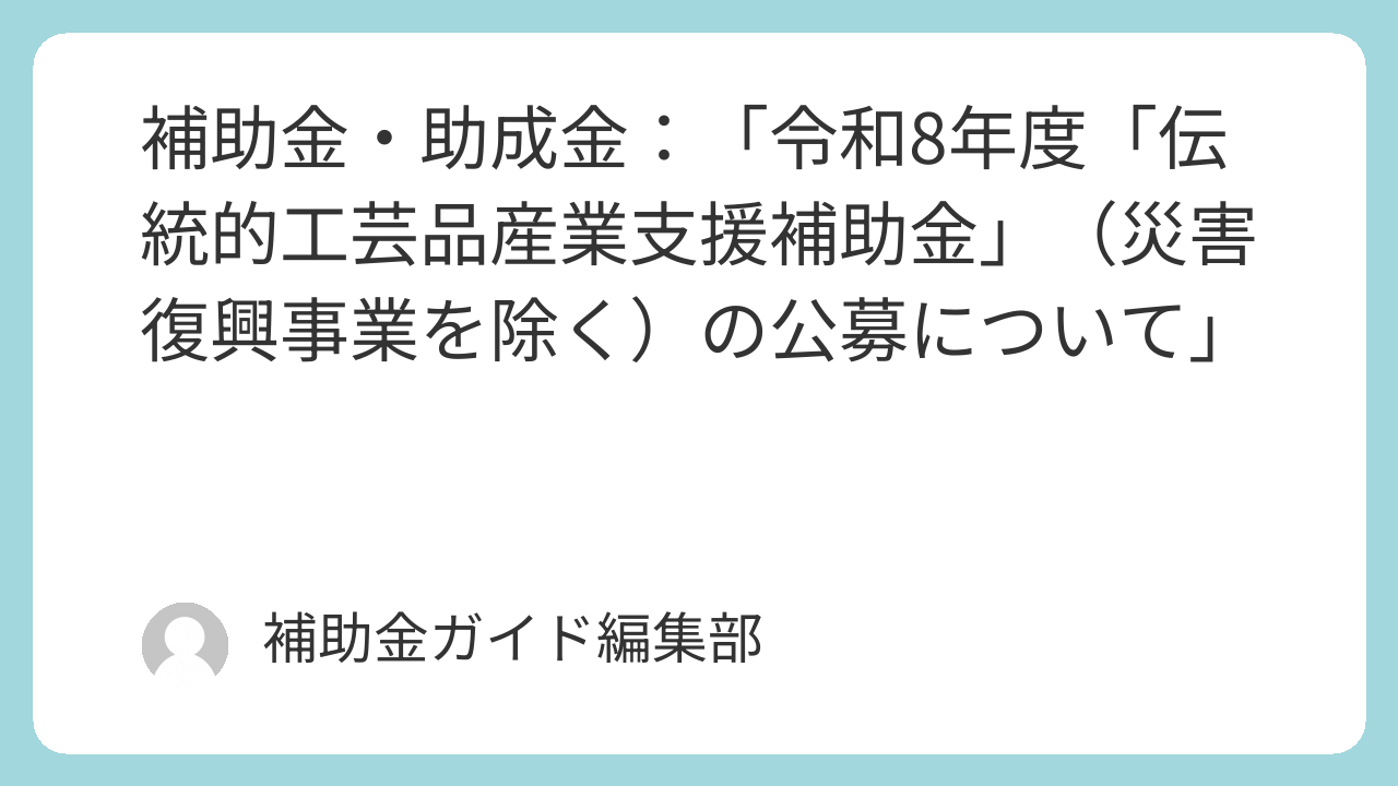 詳細情報を見る: 令和8年度「伝統的工芸品産業支援補助金」(災害復興事業を除く)の公募について