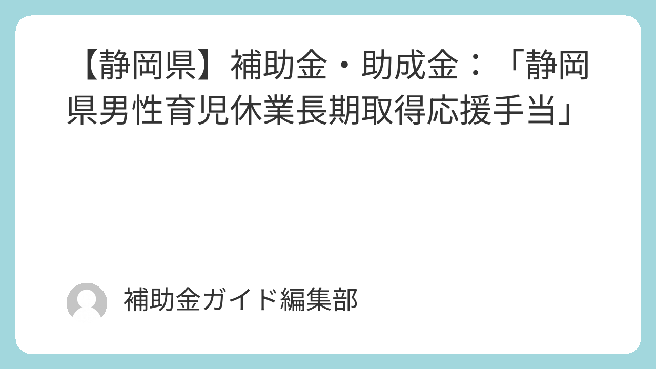 【静岡県】補助金・助成金:「静岡県男性育児休業長期取得応援手当」解説
